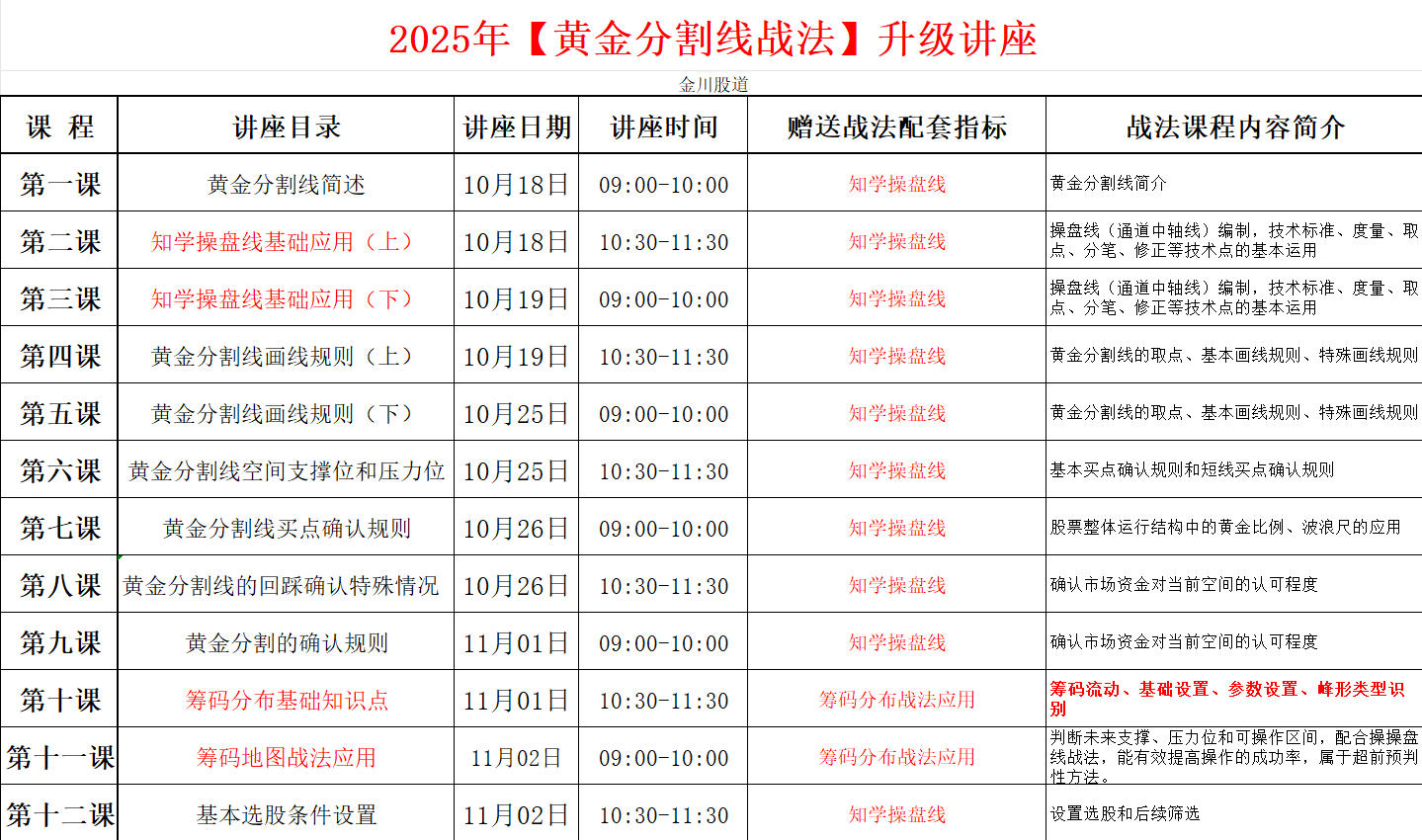 【知学黄金分割线战法】升级讲座将于2025年10月18日正式开讲,本期讲座共十二节课,每周六、周日早上9:00-10:00、10:30-11:30各两节课,学期三周。